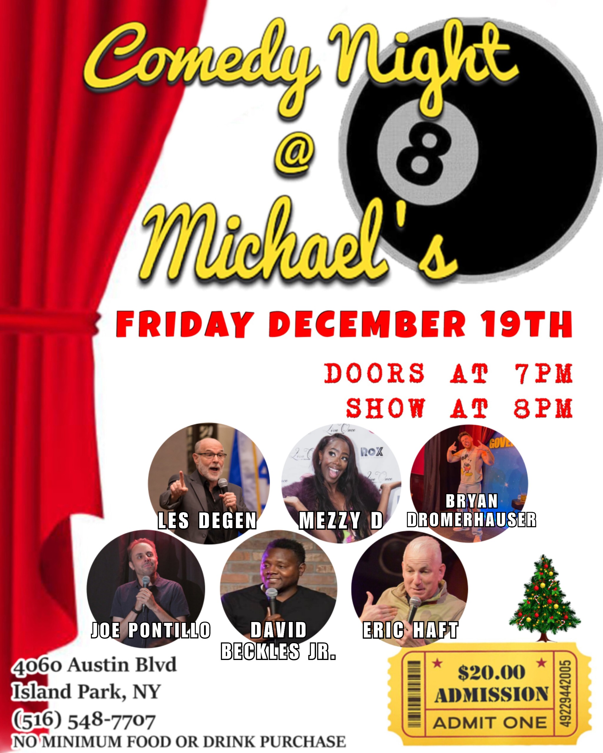 Michael’s Billiards, Island Park (Comedy Night) + Add to Google Calendar + iCal / Outlook export 00 days 00 hours 00 minutes 00 seconds Date Dec 19 2025 Time 8:00 pm - 10:00 pm Share this event Contact Email lesdegen@gmail.com Phone 516-592-7823